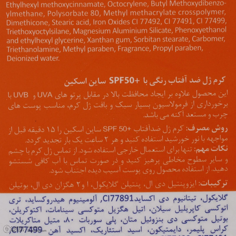 ژل کرم ضد آفتاب +SPF50 فاقد چربی بژ روشن ساین اسکین با بافت فوق سبک و جذب سریع ، فاقد چربی (چربی 0%) بوده و در برابر تعریق و شستشو مقاوم است. این محصول که مناسب پوستهای چرب و مستعد آکنه است، نمای نهایی مات روی پوست ایجاد میکند. کرم ژل ضد آفتاب ساین شیلد SPF 50+ در برابر پرتو های UVA و UVB و نور مرئی از پوست محافظت میکند.